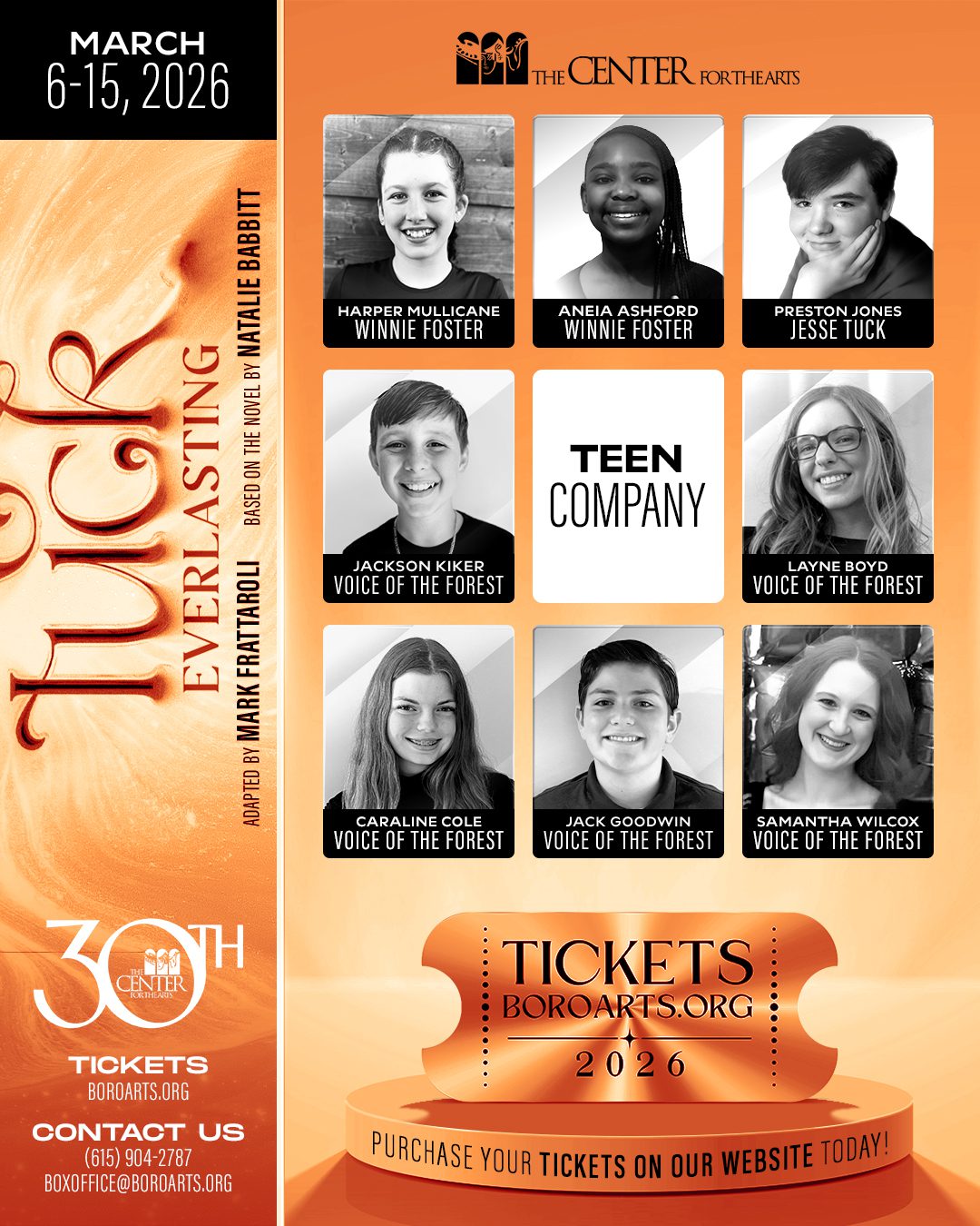 TUCK EVERLASTING is produced by special arrangement with Stage Partners. (www.yourstagepartners.com)